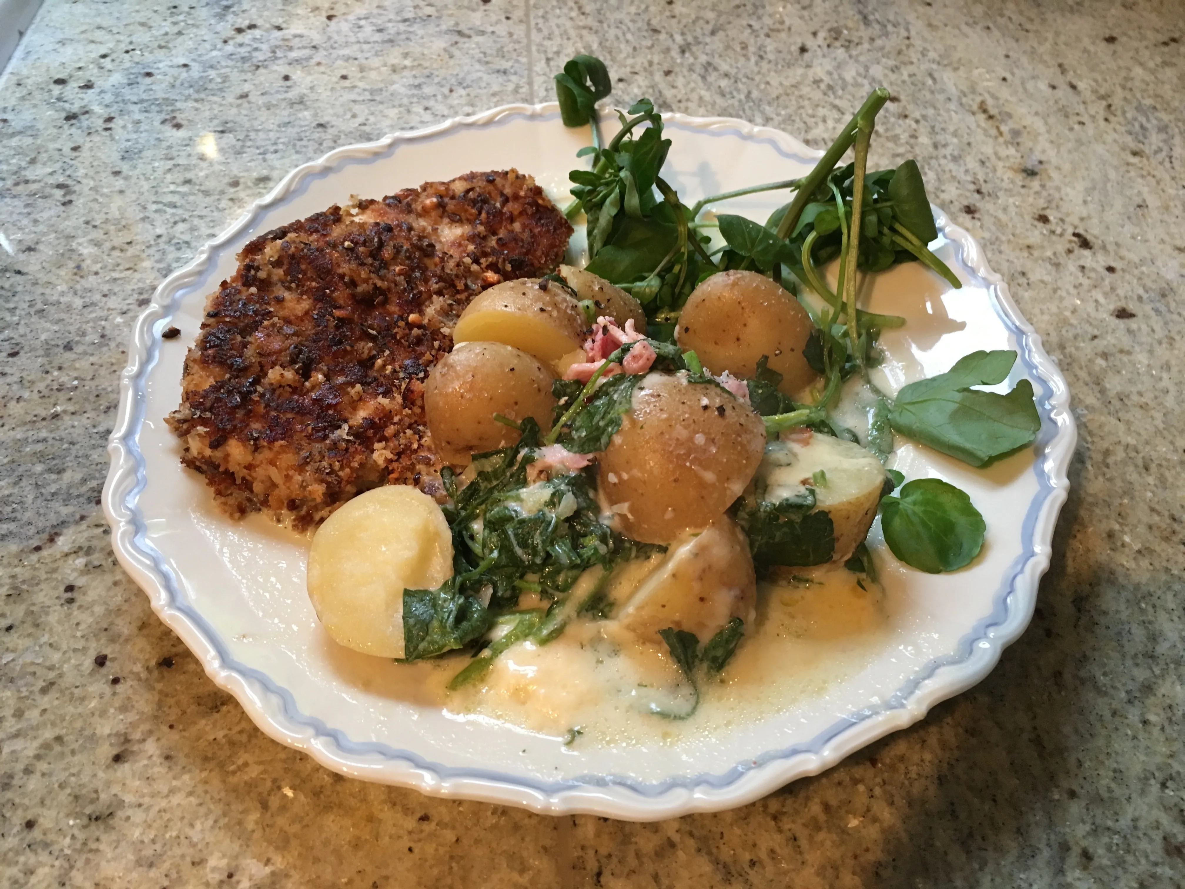 - Retirer les pommes de terre du feu et ajouter presque tout le cresson (le cresson va flétrir)